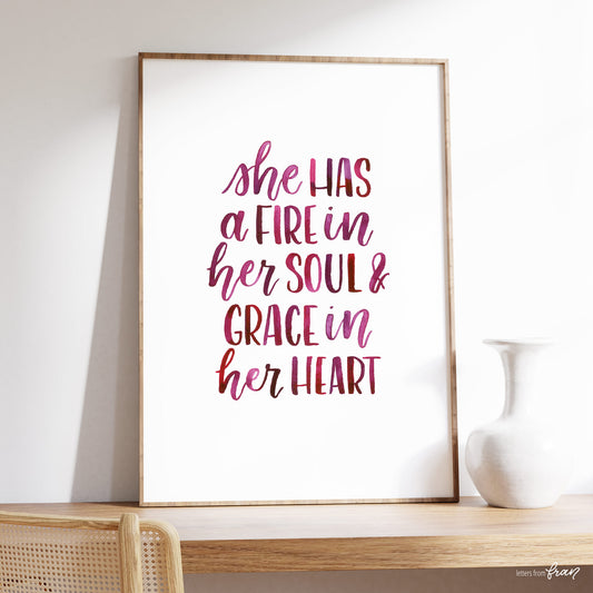 She has a fire in her soul & grace in her heart- Print