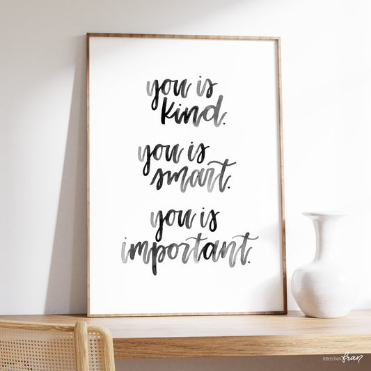 You is kind. You is smart. You is important - Print